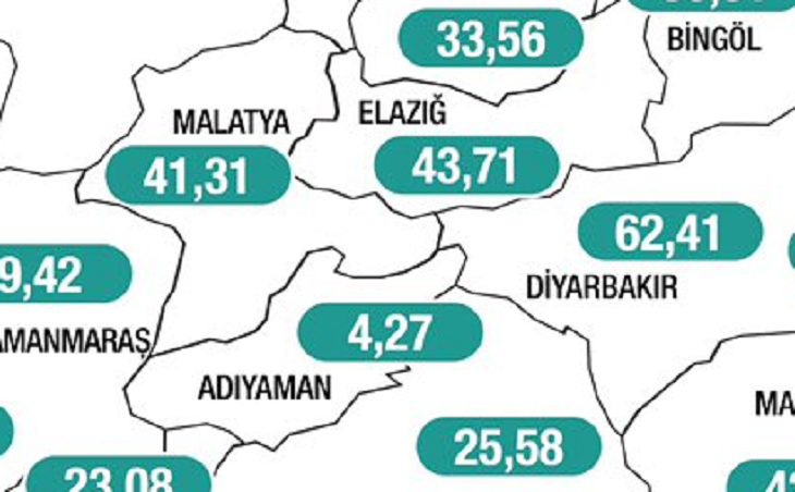 Açıklanan verilere göre 26 Haziran - 2 Temmuz tarihleri arasında Elazığ'da 100 bin kişide vaka oranı 43,71 oldu. Açıklanan verilerle Elazığ'daki vaka sayısında geçen haftaya göre durumun sabit kaldığı görüldü. Veriler hesaplandığında Elazığ'da haftalık yaklaşık 253 günlük 36 vaka olduğu görülüyor.