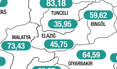 Açıklanan verilere göre 22-28 Mayıs tarihleri arasında Elazığ'da 100 bin kişide vaka oranı 45,75 oldu. Açıklanan verilerle Elazığ'daki vaka sayısnın net bir şekilde düştüğü görüldü. Veriler hesaplandığında Elazığ'da haftalık yaklaşık 265 günlük 37 vaka olduğu görülüyor.