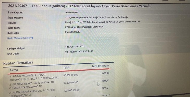 TOKİ, Elazığ ile ilgili ihaleyi 8 Haziran 2021 Salı günü gerçekleştirdi.