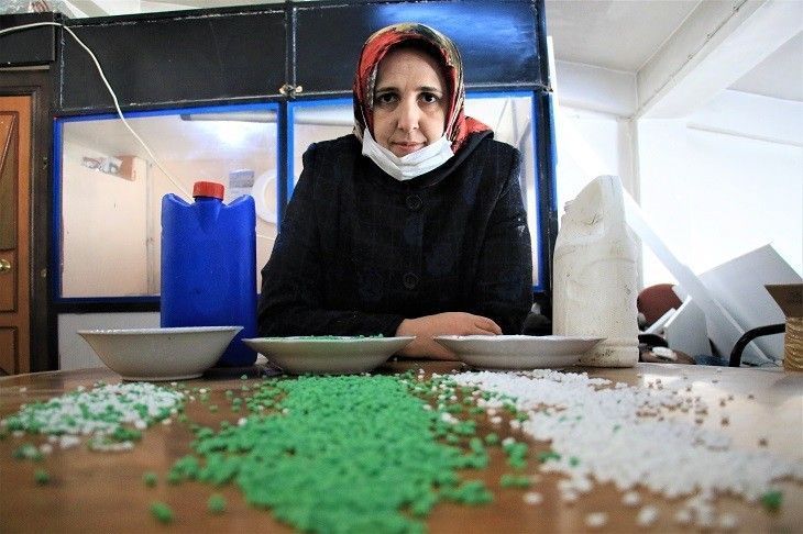 Elazığ'da ev hanımı olan 3 çocuk annesi Birsel Doğan, devletten aldığı 100 bin TL'lik hibe desteğiyle plastik geri dönüşüm tesisi kurup, hem patron oldu hem de doğaya zararlı ürünlerin tekrar dönüşümüne katkı sağlamaya başladı.