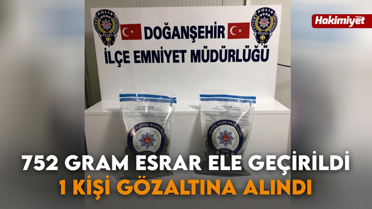 Doğanşehir İlçe Emniyet Müdürlüğü ekipleri, uyuşturucu madde imalatı ve ticaretine yönelik yürütülen çalışmalar kapsamında bir şahsı takibe aldı. Şüphelinin ikametinde ve aracında yapılan aramalarda, 752 gram esrar maddesi ele geçirildi. Gözaltına alınan şüpheli, emniyetteki işlemlerinin ardından adliyeye sevk edildi. Zanlı, çıkarıldığı mahkemece tutuklanarak cezaevine gönderildi.