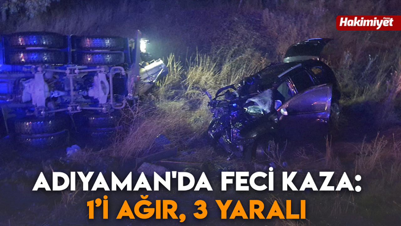 Adıyaman'da otomobil ile kamyonun çarpışması sonucu meydana gelen kazada 1'i ağır 3 kişi ağır yaralandı.