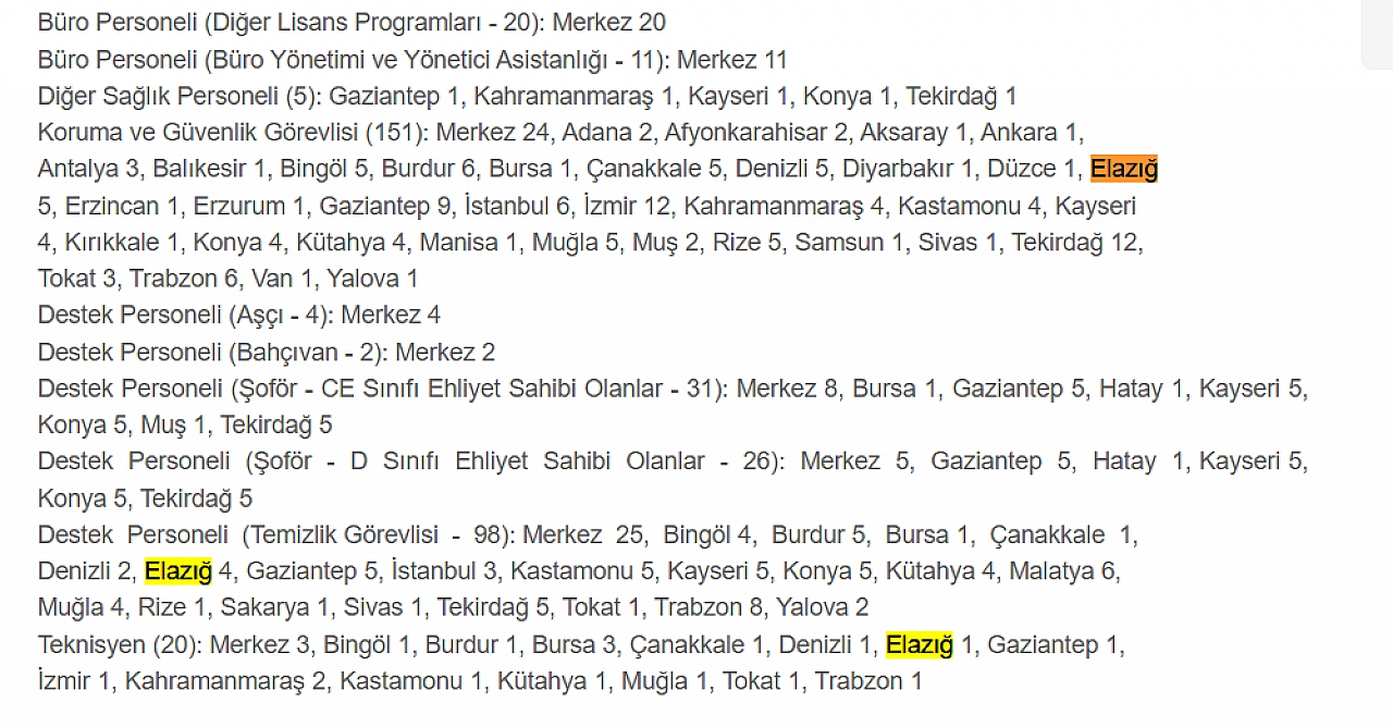 ELAZIĞ İÇİN AÇILAN KADROLARA ÖZEL ŞARTLAR