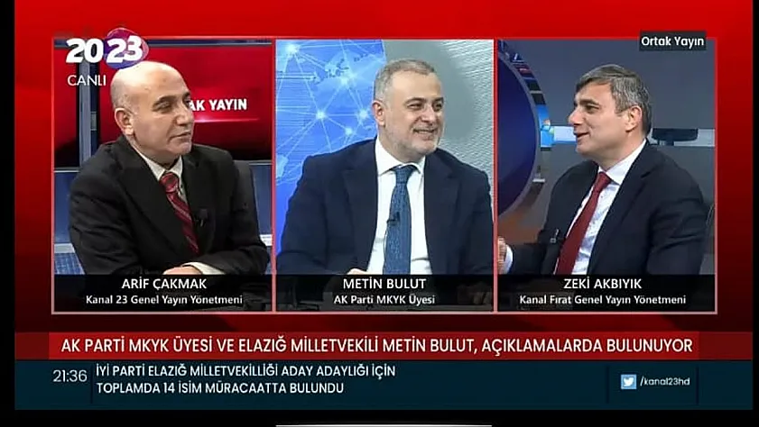 AK Parti MYKYK Üyesi ve Elazığ Milletvekili Metin Bulut, Kanal Fırat ve Kanal 23 ortak canlı yayınında Ak Parti'nin Elazığ listesine ilişkin ipuçları verdi.