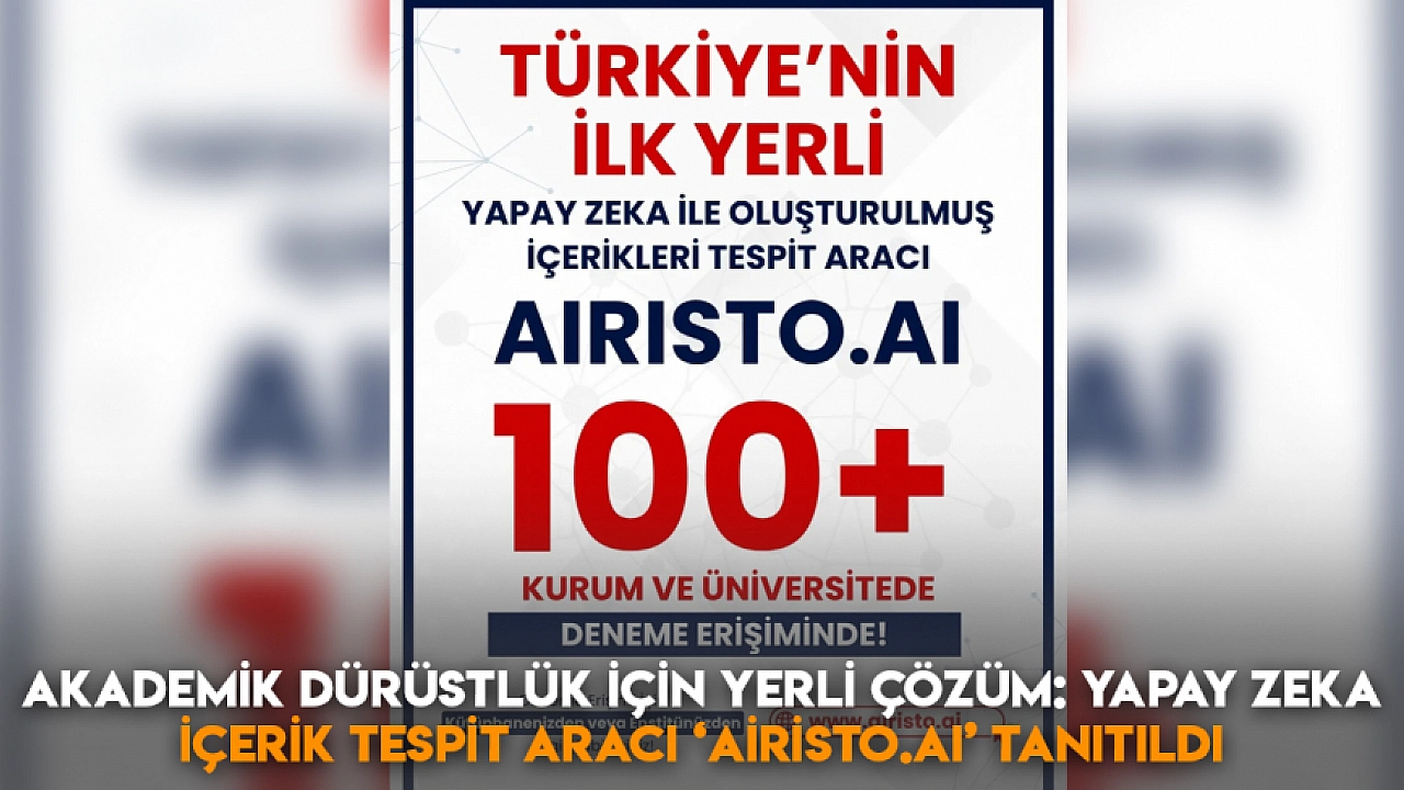 - Akademik dürüstlük için yerli çözüm: Yapay zeka içerik tespit aracı 'Airisto.ai' tanıtıldı