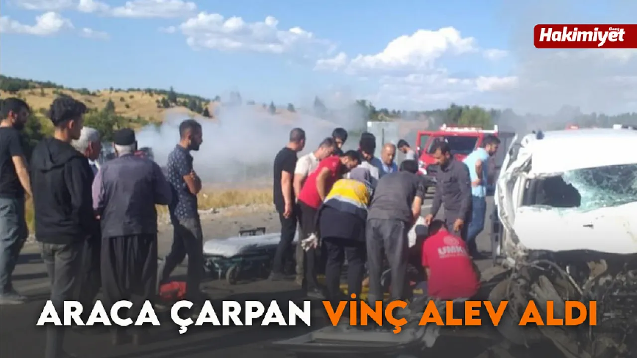 Bingöl-Diyarbakır Karayolu’nda vinç ile hafif ticari aracın çarpışması sonucu meydana gelen trafik kazasında 5 kişi yaralandı. Çarpmanın ardından vinç alev topuna döndü.