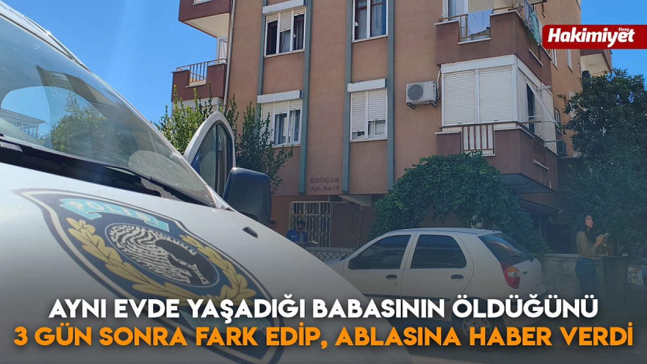 Antalya'da akli dengesi yerinde olmadığı iddia edilen şahıs vefat eden babası ile birlikte 3 gün boyunca aynı evde yaşadı. Yaşlı adamın öldüğünü, 112 Acil Çağrı Merkezi'ne kızı tarafından yapılan ihbar ortaya çıkardı.