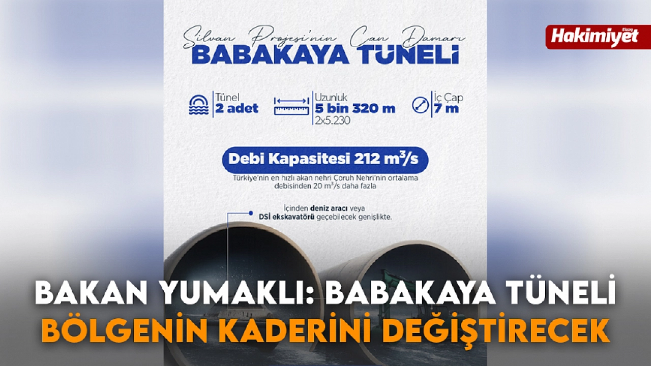Tarım ve Orman Bakanı İbrahim Yumaklı, Silvan Projesi'nin en önemli etaplarından biri olan Babakaya Tüneli'ne ilişkin açıklamalarda bulundu.