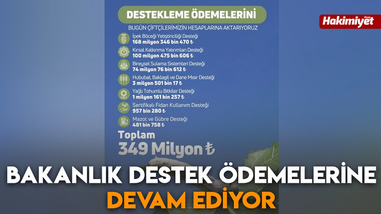 349 milyon TL tarımsal destek ödemesini bugün çiftçilerimizin hesaplarına aktarıyoruz.