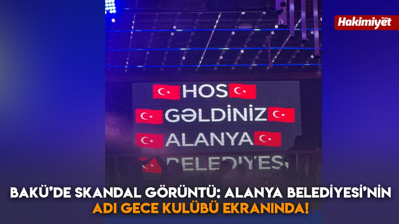 Azerbaycan'ın başkenti Bakü'de çekilen bir fotoğraf, tartışma konusu oldu. Görüntülerde bir gece kulübünde dev LED ekranda 'Hoş Geldiniz Alanya Belediyesi' yazısının yer aldığı görüldü.