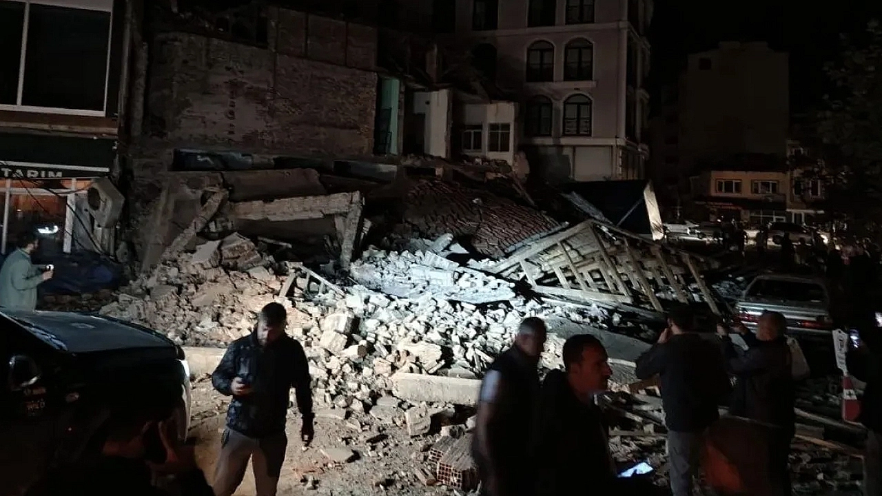 Balıkesir'in Sındırgı ilçesinde meydana gelen 6.1 büyüklüğündeki deprem sonrasında bölgede daha önceki depremde hasar gören ve riskli olduğu için boşaltılan 3 bina yıkıldı.
