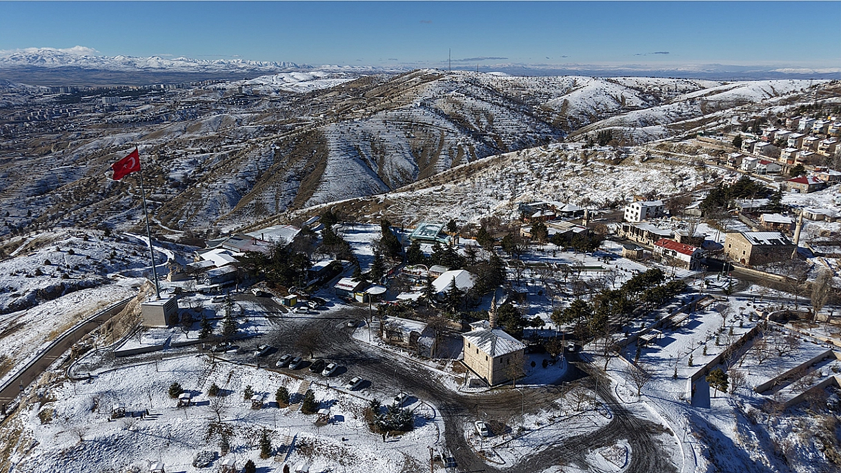 Elazığ'da etkili olan kar yağışında 1200 rakımlı tarihi Harput Mahallesi de beyaz gelinliğini giydi. Kar altında kalan tarihi yapılar kartpostallık görüntüler oluşturdu.