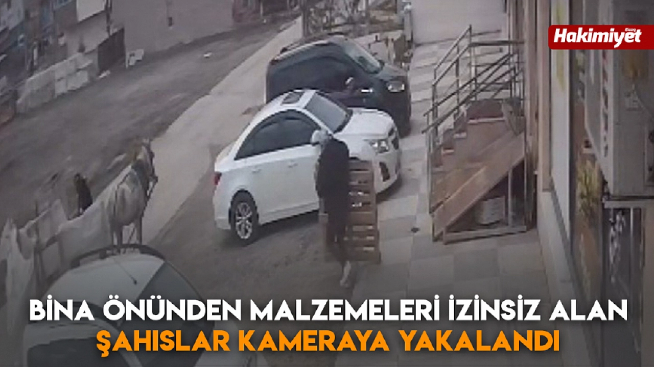 Bina önünden malzemeleri izinsiz alan şahıslar kameraya yakalandı