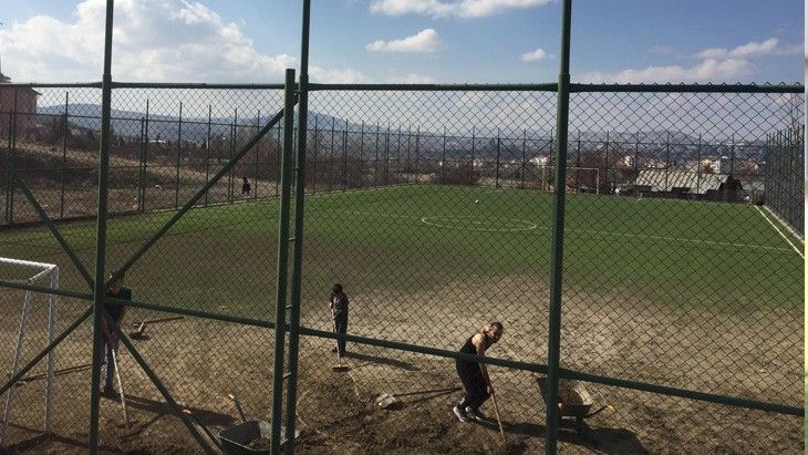 Yıllardan beri mahalle gençliğinin rahat spor yapabilmelerini engelleyen bu durumun çözümü ise oldukça basit. Dağlık bir alana yapılan sahaya ufak çaplı bir duvar örülmesi halinde yağmur, kar suları sahaya akmayacak ve zemin çamur deryasına dönmeyecek.