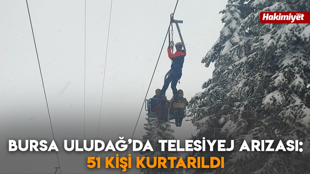 Bursa'nın Osmangazi ilçesinde bulunan Uludağ 1. Oteller Bölgesi'nde telesiyejde meydana gelen arıza nedeniyle mahsur kalan 51 kişi, ekiplerin çalışmasıyla kurtarıldı.