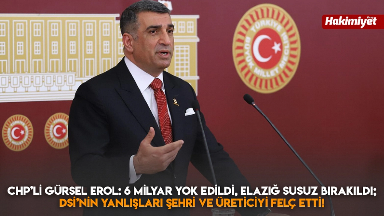 - CHP'li Gürsel Erol: 6 milyar yok edildi, Elazığ susuz bırakıldı DSİ'nin yanlışları şehri ve üreticiyi felç etti!