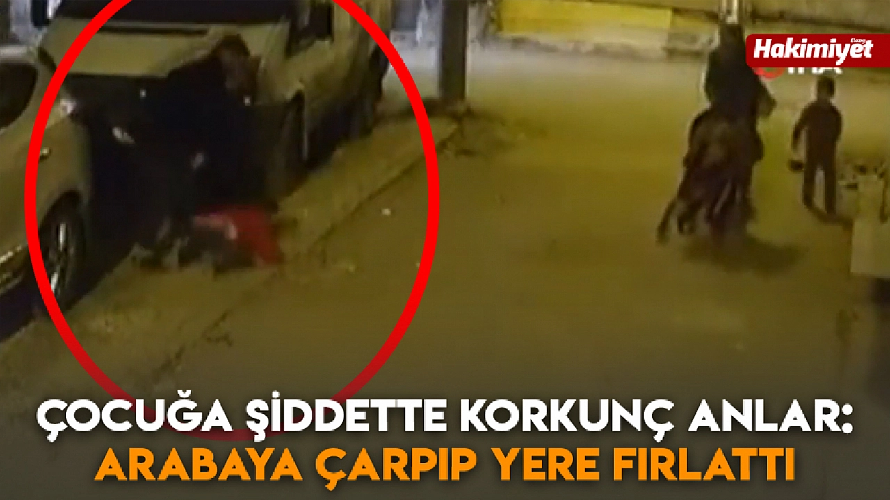 Çocuğa şiddette korkunç anlar: Arabaya çarpıp yere fırlattı