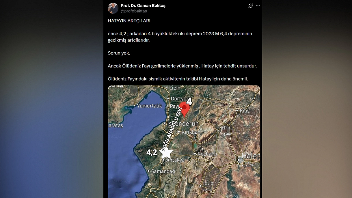 Prof. Dr. Osman Bektaş, Hatay'daki son depremlerin 2023'teki 6,4'lük depremin gecikmiş artçıları olduğunu belirtirken, asıl riskin Ölüdeniz Fayı'nda olduğunu vurguladı.