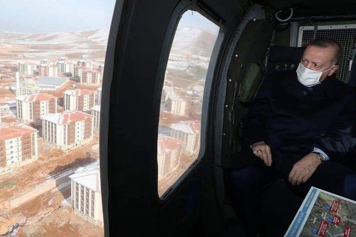 Cumhurbaşkanı Erdoğan, Havaalanındaki karşılama töreninden sonra 24 Ocak depreminin ardından yaraları sarmak adına Elazığ’da yapımına hızlı bir şekilde başlanılan konutların olduğu alanı helikopter ile gezdi. Cumhurbaşkanı Erdoğan'a; Cumhurbaşkanı Yardımcısı Fuat Oktay, İçişleri Bakanı Süleyman Soylu ve Çevre ve Şehircilik Bakanı Murat Kurum eşlik etti.