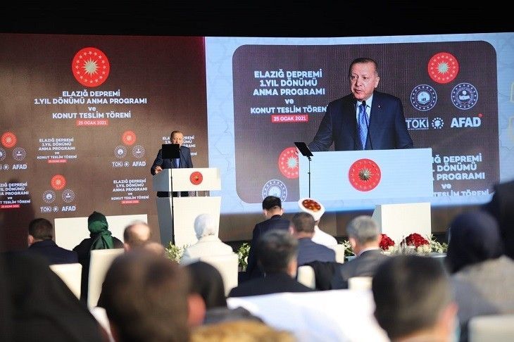 Cumhurbaşkanı Erdoğan, Yazıkonak'ta Elazığ depreminin birinci yıl dönümü nedeniyle düzenlenen anma ve deprem konutları anahtar teslim törenine katıldı.
