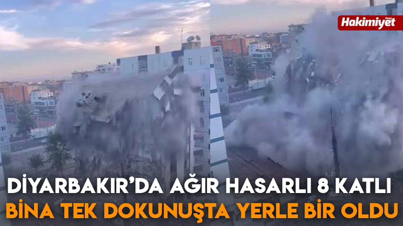 Diyarbakır'da ağır hasarlı 8 katlı bina tek dokunuşta yerle bir oldu