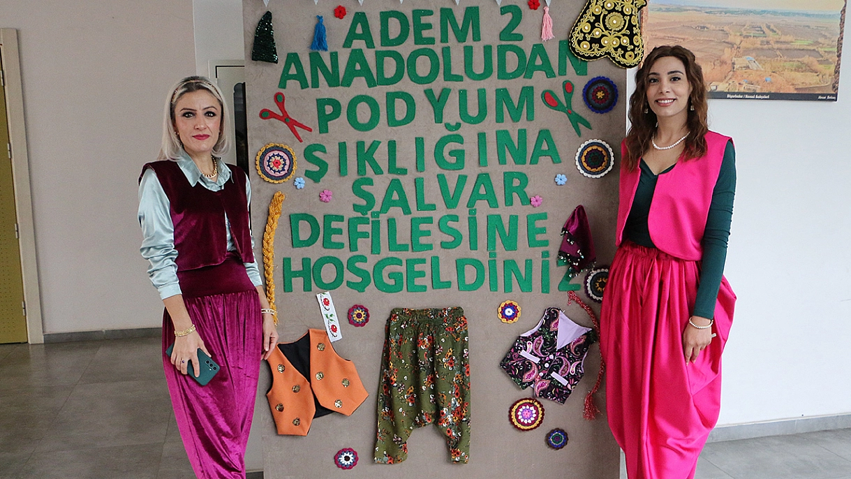 Diyarbakır'da düzenlenen 'Köklerden Podyuma Zamansız Moda Şalvar Defilesi', kadın emeğini, yerel kültürü ve dayanışma ruhunu sahneye taşıdı 7 bölgeden özgün şalvar tasarımları ve arbane gösterisi etkinliğe renk kattı.