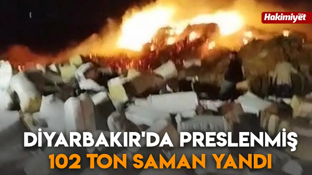 Diyarbakır'ın Hazro ilçesinde preslenmiş 102 ton saman yandı.