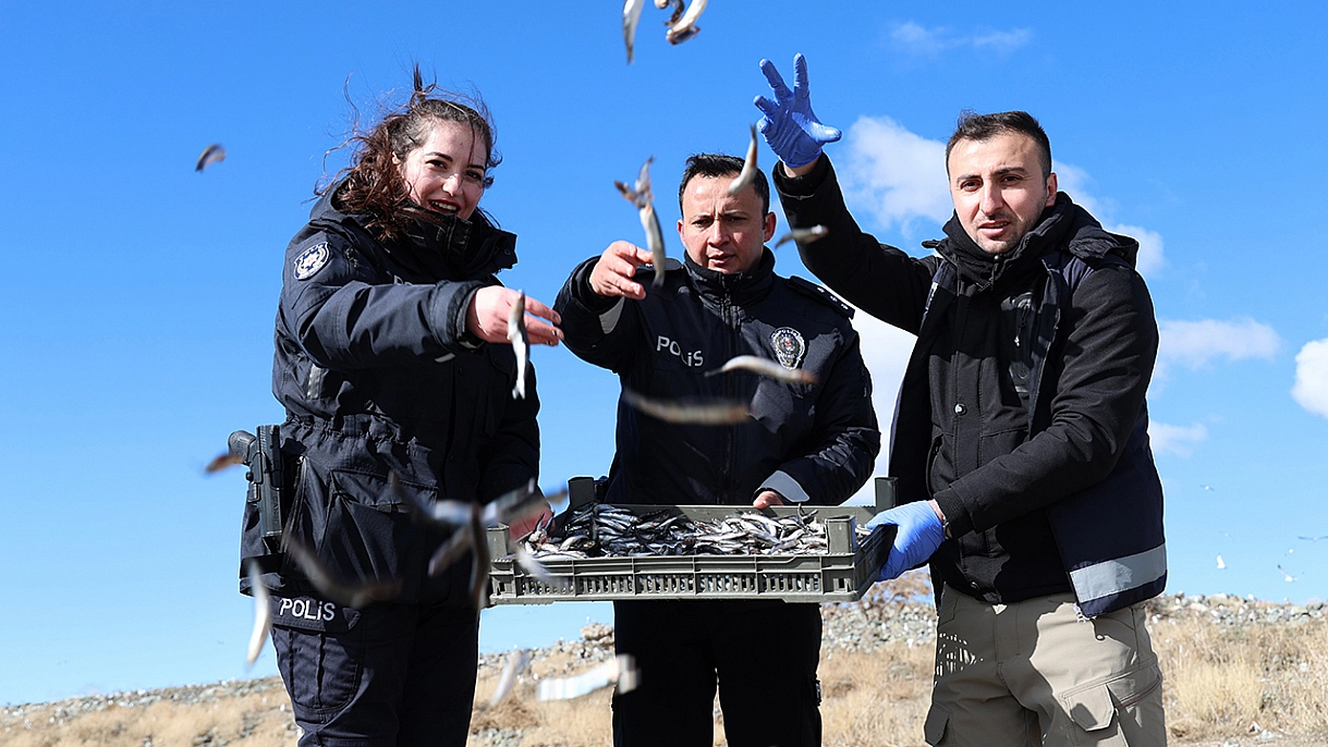 Elazığ Hazar Gölü'ndeki Tavşan Adası'nın sakinleri, çetin kış şartlarında yiyecek bulamayınca devreye polis ekipleri girdi. Ekipler, dalgalara rağmen adaya ulaşarak tavşanları sebzeyle, aç kalan martıları ise balıkla besledi.