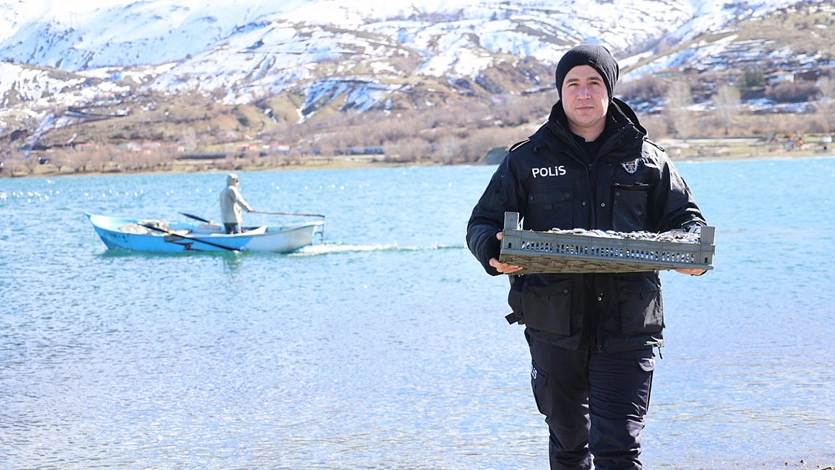 Elazığ Hazar Gölü'ndeki Tavşan Adası'nın sakinleri, çetin kış şartlarında yiyecek bulamayınca devreye polis ekipleri girdi. Ekipler, dalgalara rağmen adaya ulaşarak tavşanları sebzeyle, aç kalan martıları ise balıkla besledi.