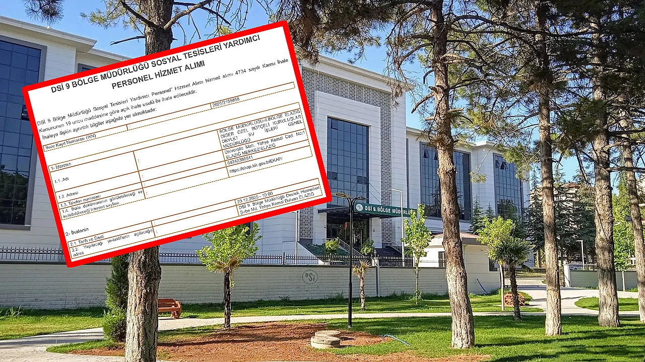 Devlet Su İşleri (DSİ) 9. Bölge Müdürlüğü, Elazığ'daki sosyal tesislerinde çalıştırılmak üzere toplam 25 yardımcı personel alımı için ihale düzenleyeceğini duyurdu. 4734 sayılı Kamu İhale Kanunu'nun 19. maddesine göre açık ihale usulü ile yapılacak olan ihale, 23 Aralık 2025 tarihinde gerçekleştirilecek. İşte detaylar…