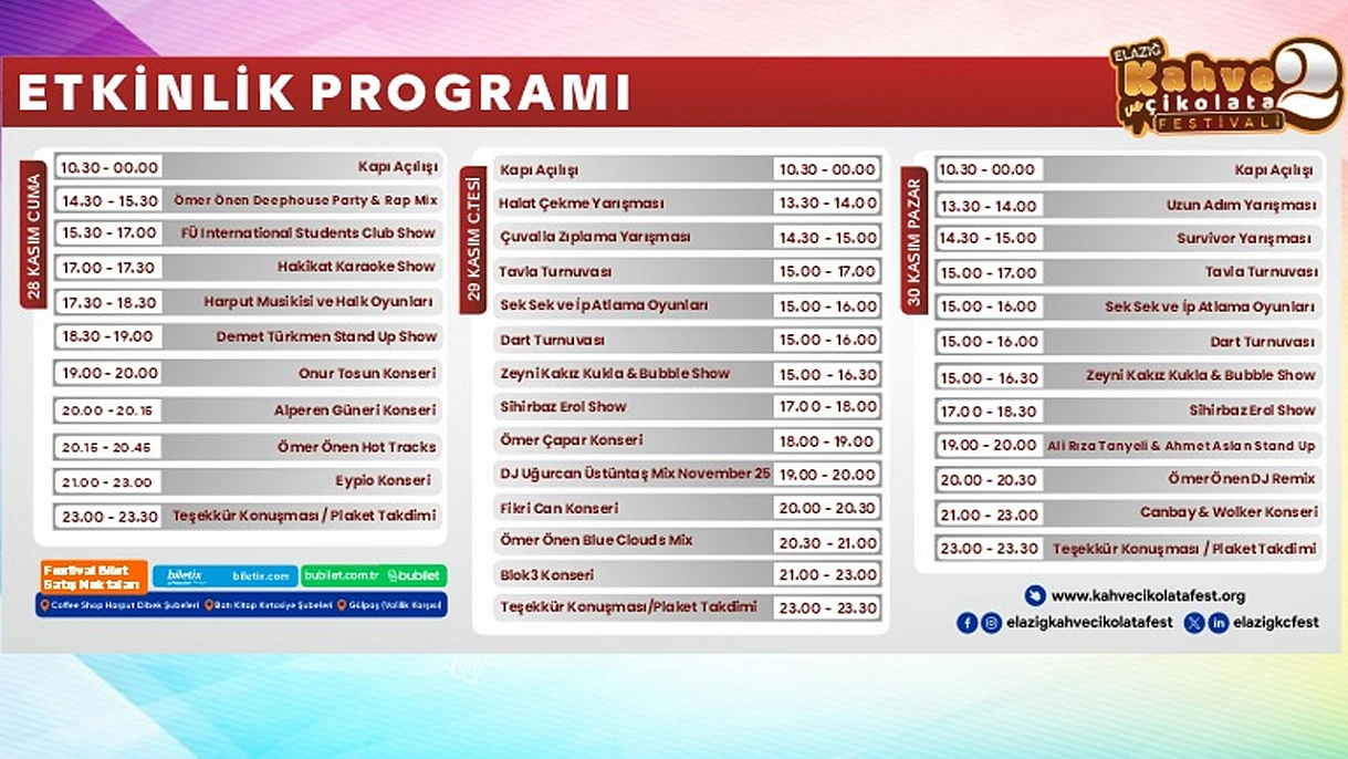Elazığ, beş yıl aradan sonra yeniden kahve ve çikolatanın büyüleyici atmosferine hazırlanmaya başladı. İlk kez 2018 yılında düzenlenen ve yoğun ilgi gören Kahve ve Çikolata Festivali, bu yıl ikinci kez kapılarını açmaya hazırlanıyor. 28–29–30 Kasım 2025 tarihlerinde Ahmet Tevfik Ozan Fuar ve Kongre Merkezi'nde gerçekleşecek olan festival hem şehir sakinlerine hem de çevre illerden gelecek ziyaretçilere benzersiz bir deneyim sunmayı hedefliyor.
