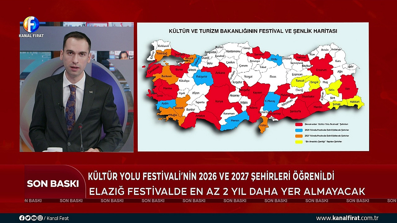 Program sunucusu Furkan Dilaver, Kültür ve Turizm Bakanlığı tarafından düzenlenen “Kültür Yolu Festivali” programına 2026 ve 2027 yıllarında dahil edilecek şehirleri öğrendiklerini belirterek bu şehirlerin arasında Elazığ’ın yine yer almadığını açıkladı.