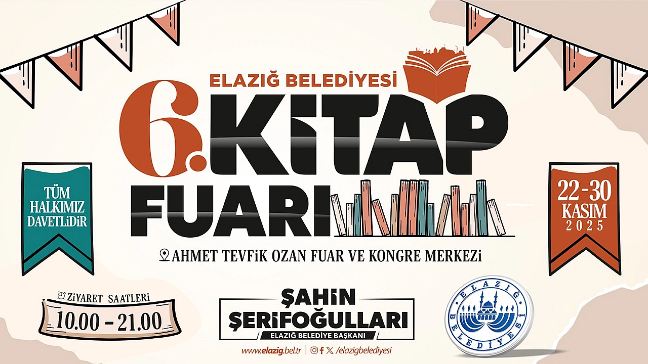 Elazığ Belediyesi Basın-Yayın ve Halkla İlişkiler Müdürlüğü’nden yapılan açıklamada, Ahmet Tevfik Ozan Fuar ve Kongre Merkezi’nde düzenlenecek olan 6. Kitap Fuarı’na tüm vatandaşlar davet edildi.
