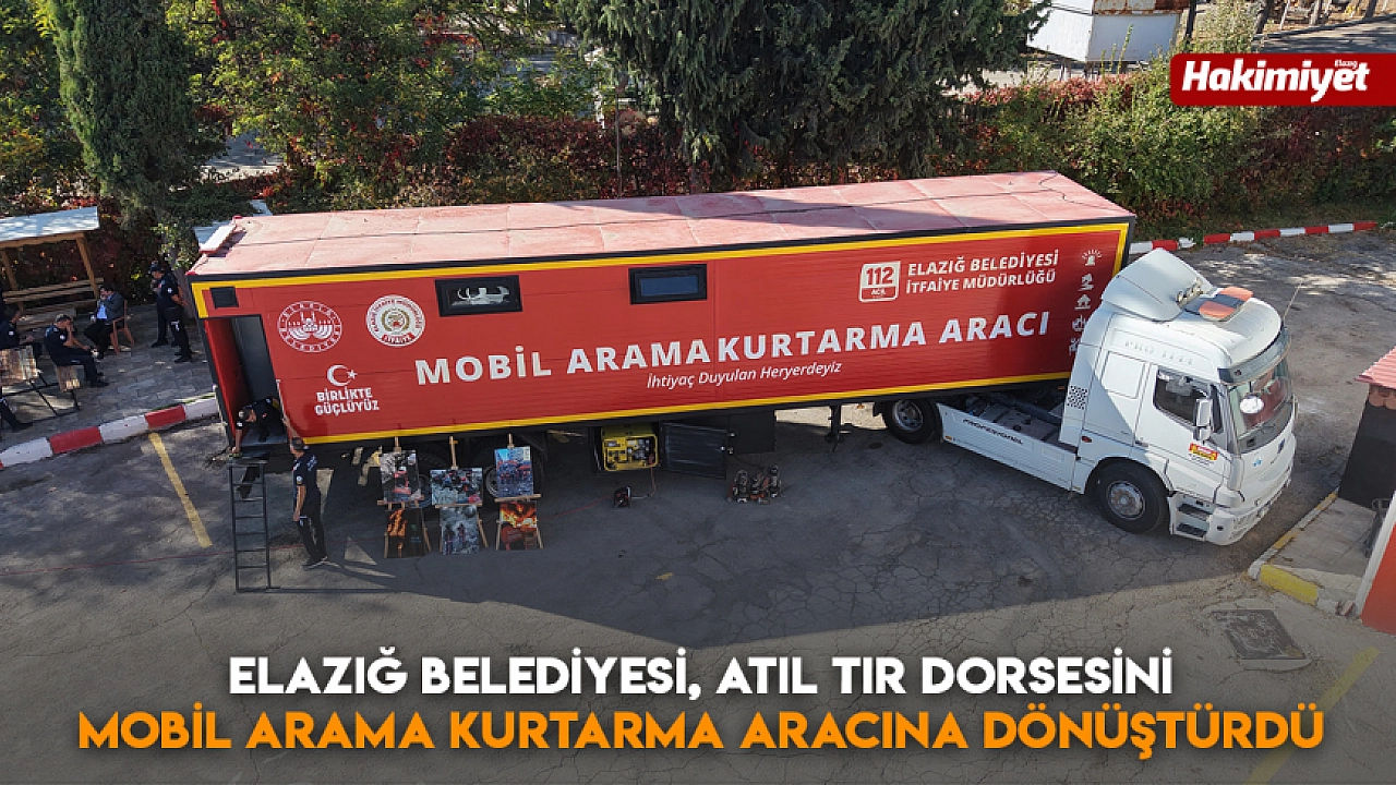 Elazığ Belediyesi İtfaiye Müdürlüğü, afet durumlarında kullanılmak üzere atıl durumdaki bir tır dorsesini tamamen kendi imkanlarıyla 'Mobil Arama Kurtarma Aracı'na dönüştürdü.