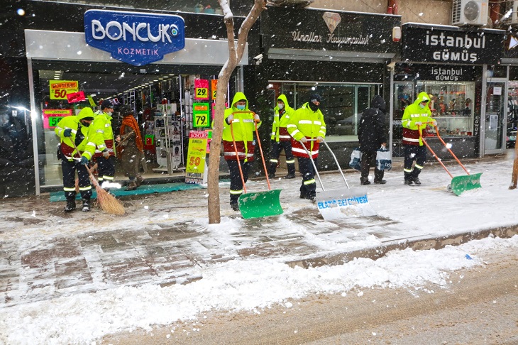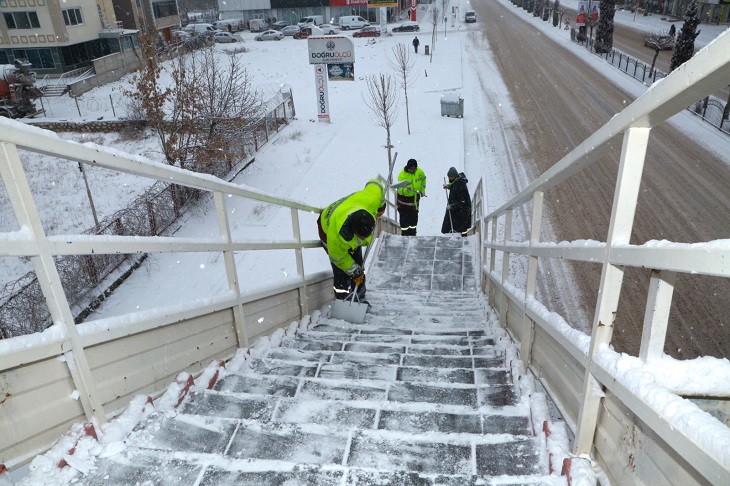 Gece boyunca sürdürülen çalışmaların ardından sabahın ilk ışıklarıyla birlikte de karla mücadele ekipleri tarafından yaya trafiğinin yoğun olduğu bulvar ve caddeler başta olmak üzere kaldırım, üstgeçit, otobüs durakları ve meydanlarda önce kar küreme çalışması, ardından da buzlanmaya karşı solüsyon uygulaması gerçekleştirildi.