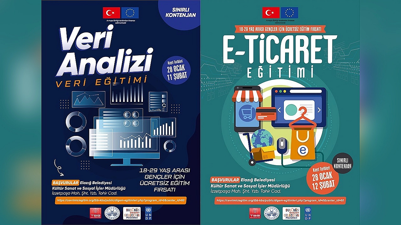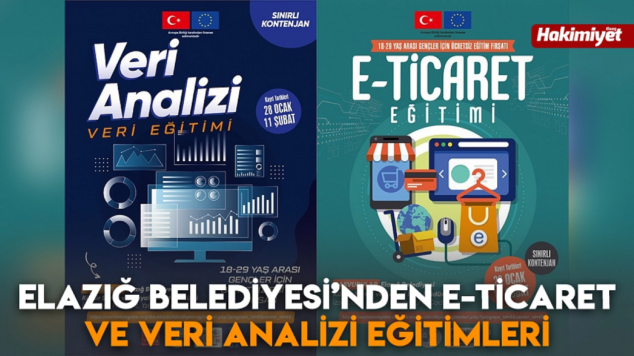 Elazığ Belediyesi Dijital Gençlik Merkezi'nde düzenlenecek E-Ticaret ve Veri Analizi eğitimleri için ücretsiz başvurular başladı.