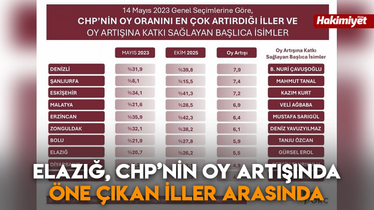 Elazığ, CHP'nin oy artışında öne çıkan iller arasında