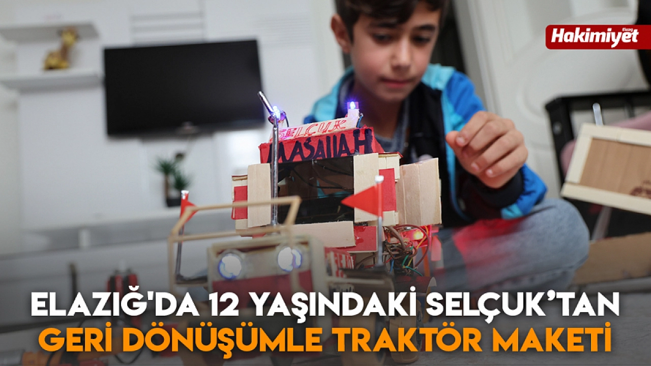 Elazığ’ın Yazıkonak beldesinde yaşayan 12 yaşındaki Selçuk Çiçekçi, el emeğiyle yaptığı traktör maketiyle dikkat çekti. Kullanılmayan oyuncak parçaları, çeşitli atık malzemeler ve harçlıklarıyla aldığı basit ekipmanları kullanan Selçuk, yaklaşık dört ay süren çalışmanın ardından maketini tamamladı.