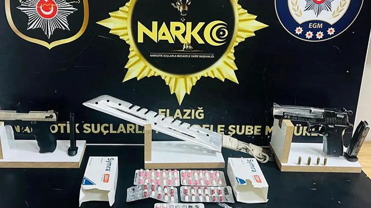 Elazığ Cumhuriyet Başsavcılığı koordinesinde İl Emniyet Müdürlüğü Narkotik Suçlarla Mücadele Şube Müdürlüğü ekipleri tarafından, uyuşturucu ile mücadele çerçevesinde, uyuşturucu ve uyarıcı madde ticareti, kullanımı ve sevkiyatının engellenmesine yönelik çalışma gerçekleştirilpdi. Çalışmada, 8 adet suç kaydı bulunan İ.C. (34) ile 19 suç kaydı bulunan K.D. (29) isimli şahısların yapılan üst aramasında 2,42 gram metamfetamin, 0,26 gram kokain ele geçirilmiş, şahısların ikamet adresinde yapılan aramasında ise 22 adet Lyrca sentetik ecza maddesi, 20 adet symra sentetik ecza maddesi, 6,03 gram metamfetamin maddesi, 1 adet pala isimli kesici alet, 2 adet ruhsatsız tabanca ve tabancalara ait 4 adet fişek ele geçirildi.