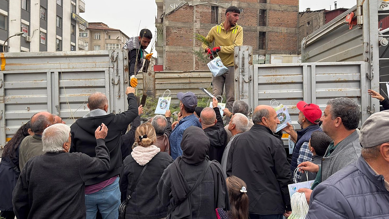 Cumhuriyet Meydanı ve 15 Temmuz Demokrasi Meydanı’nda düzenlenen dağıtım etkinliğinde vatandaşlar, bağ ve bahçelerinde dikmek üzere fidan alabilmek için yoğun ilgi gösterdi.