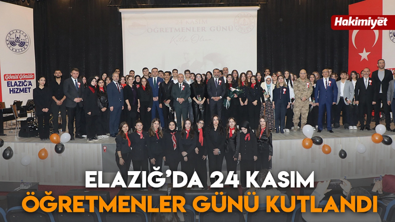 Ülke genelinde olduğu gibi Elazığ’da da 24 Kasım Öğretmenler Günü çeşitli etkinliklerle kutlandı. Bu çerçevede Bünyamin Eroğlu Kültür ve Kongre Merkezi’nde İl Milli Eğitim Müdürlüğü tarafından program düzenledi. Saygı duruşu ve İstiklal Marşı’nın okunması ile başlayan program konuşmalar ile devam etti. Ardından öğrenciler tarafından şiirler okundu ve müzik dinletisi verildi. Sinevizyon gösterimleri ile süren program, emekli öğretmenlere Hizmet Şeref Belgesi takdim edilmesi ile sona erdi.