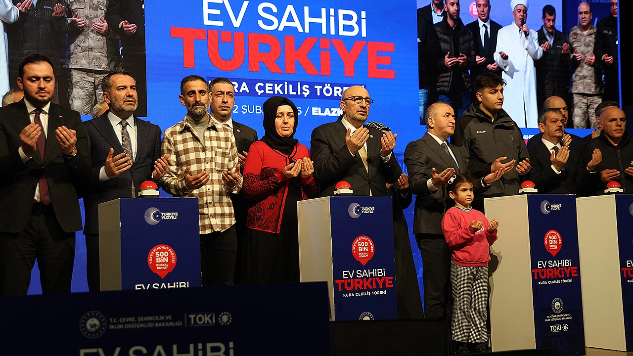 Elazığ’da Çevre, Şehircilik ve İklim Değişikliği Bakanlığı ile Toplu Konut İdaresi Başkanlığı (TOKİ) koordinesinde gerçekleştirilen Ev Sahibi Türkiye 500 bin Sosyal Konut temalı Yüzyılın Konut Projesi kapsamında Fırat Üniversitesi Atatürk Kültür Merkezinde kura çekimi töreni düzenlendi. Törenle birlikte 3 bin 825 hak sahibi yeni yuvalarına kavuşmanın heyecanını yaşadı.