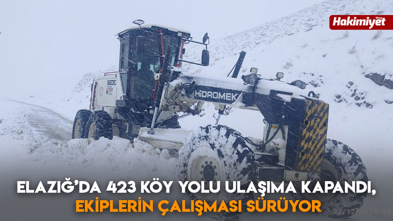 Meteorolojinin uyarı yaptığı Elazığ'da etkili olan kar yağışıyla birlikte kent genelinde 423 köy yolu ulaşıma kapandı. İl Özel İdaresi karla mücadele ekiplerinin çalışması sürüyor.