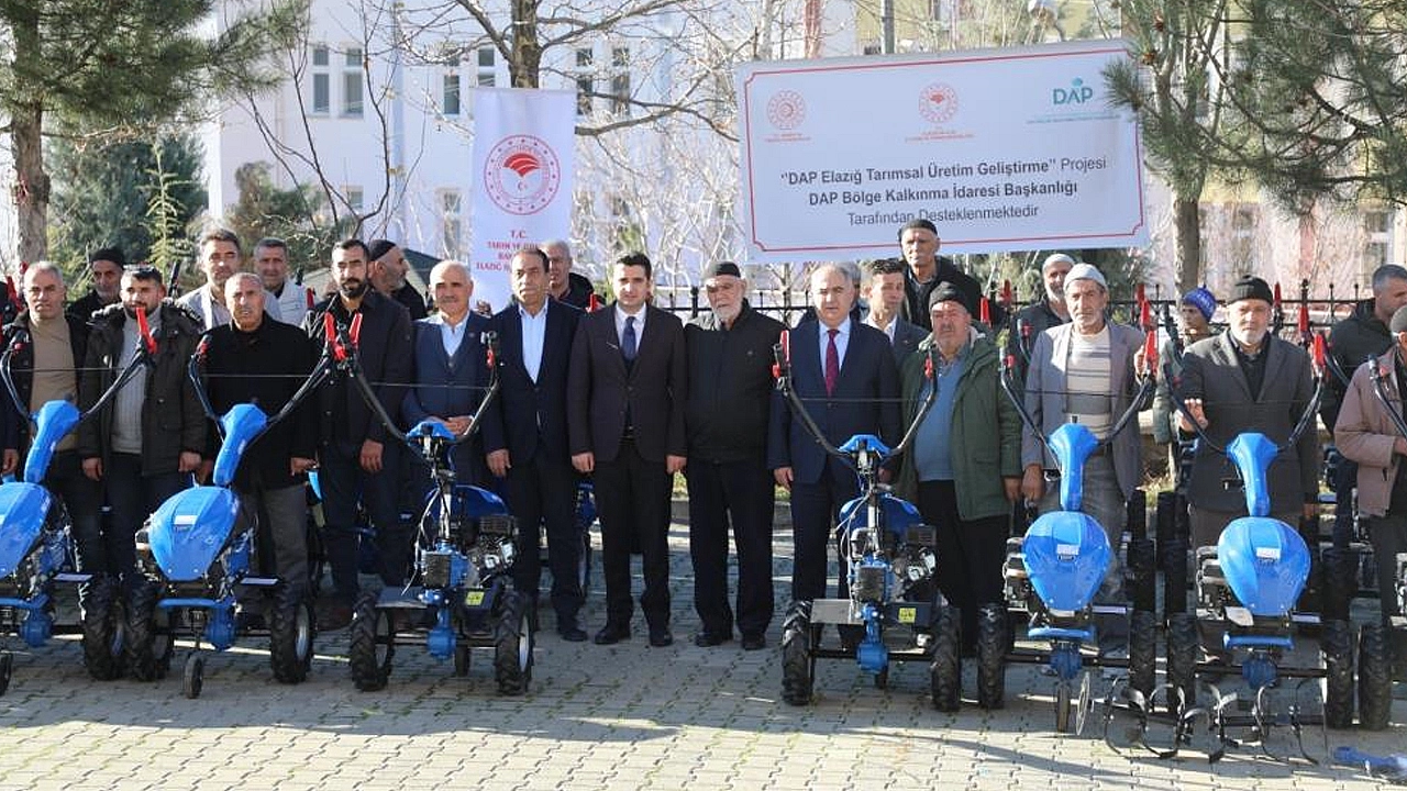 Elazığ'ın Arıcak ilçesinde 'Tarımsal Üretimi Geliştirme' projesi kapsamında 65 üreticiye çapa makinesi dağıtıldı.