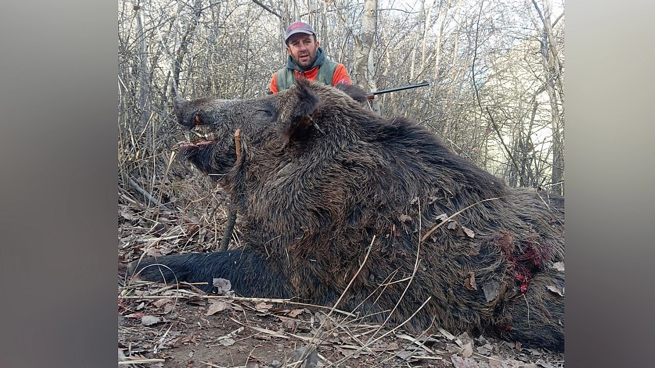 Elazığ'da bir avcı tarafından devasa boyutta bir yaban domuzu avlandı.