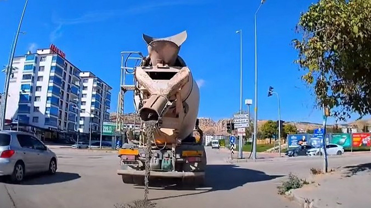 23 AEV 061 plakalı beton mikserinin yola çimento dökerek ilerlediği anlar, arkasından gelen bir aracın kamerasına yansıdı. Görüntülerde mikserin cadde boyunca çimento akıttığı görülürken, vatandaşlar yetkililerden gerekli işlemlerin yapılmasını talep etti.