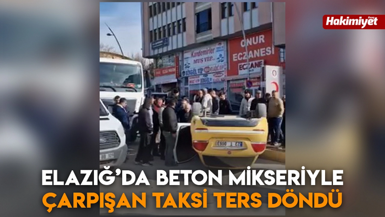 Elazığ'da beton mikseri ile çarpışan ticari taksi ters döndü, kazada 1 kişi hafif yaralandı.