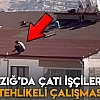 Elazığ'da çatı işçileri tehlikeli şekilde çalıştı