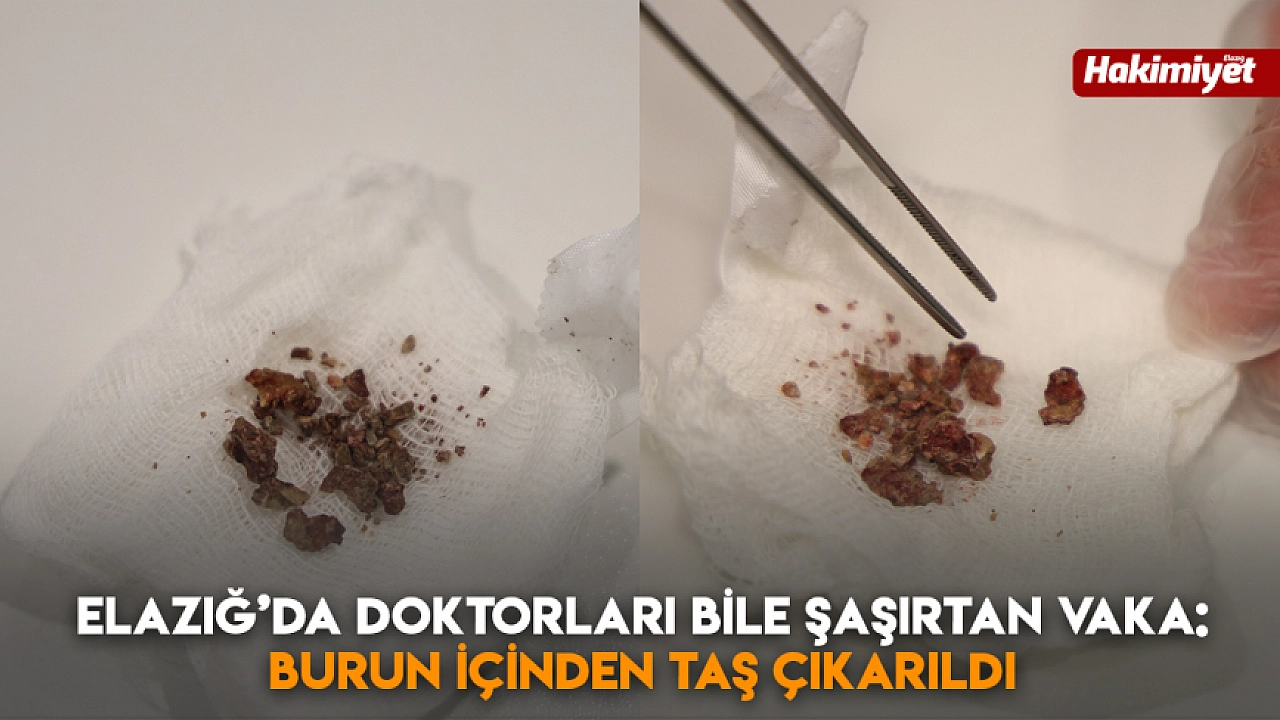 Elazığ'da burun estetiği için ameliyata alınan bir hastanın burnunda taş tespit edildi. Burunda taş görülmesinin nadir bir durum olduğu belirtilen KBB Doktoru Op. Dr. Erhan Demirbağ, burun içine kaçan yabancı cisimlerin yıllar içinde taşa dönüşebileceğini ifade etti.