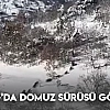 Elazığ’ın Baskil ilçesine bağlı Hacıhüseyinler köyünde yiyecek arayan domuz sürüsü bir vatandaşın cep telefonu kamerasına yansıdı. Kısa bir süre karlı arazide yiyecek arayan sürü daha sonra hızla koşarak gözden kayboldu.